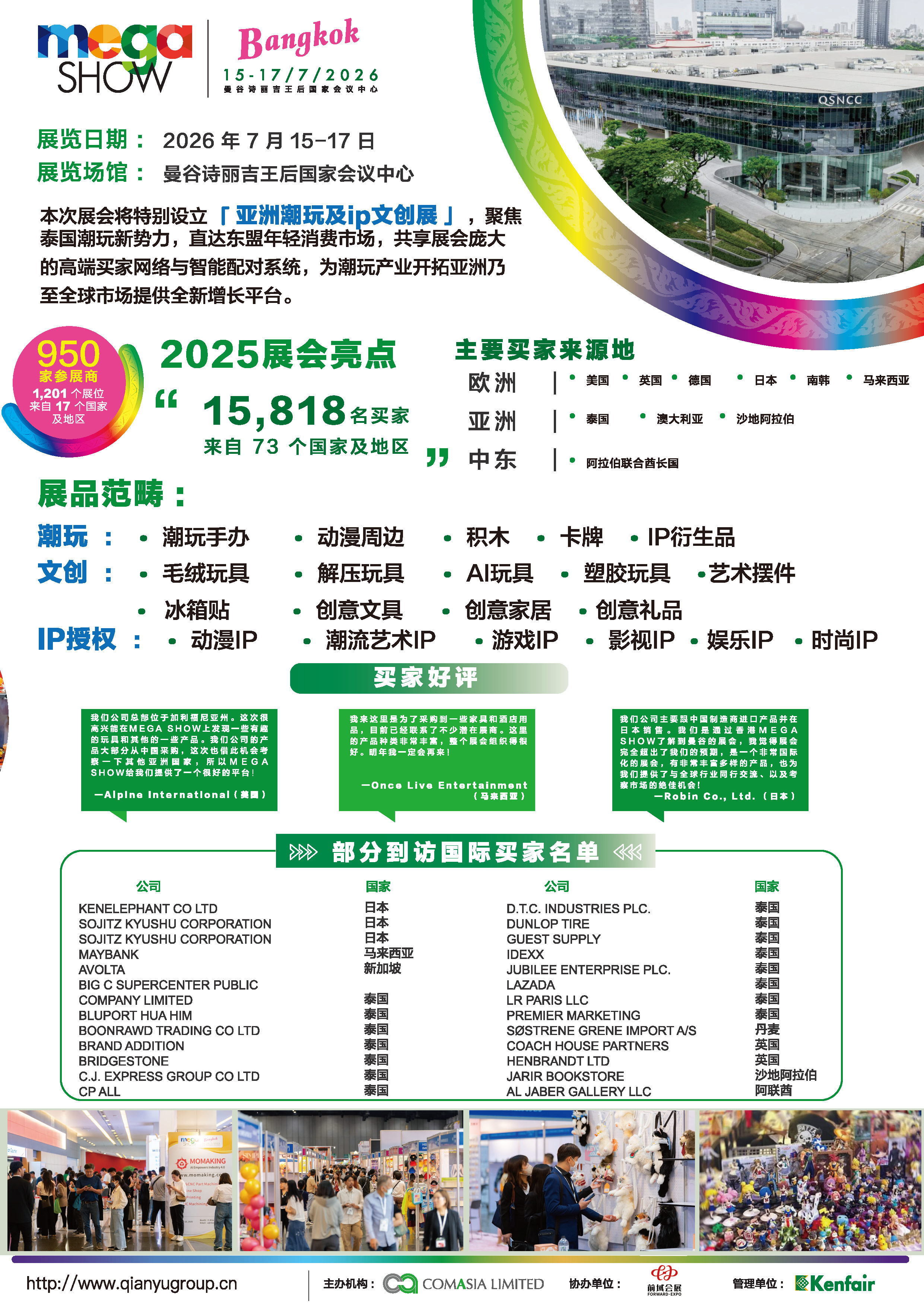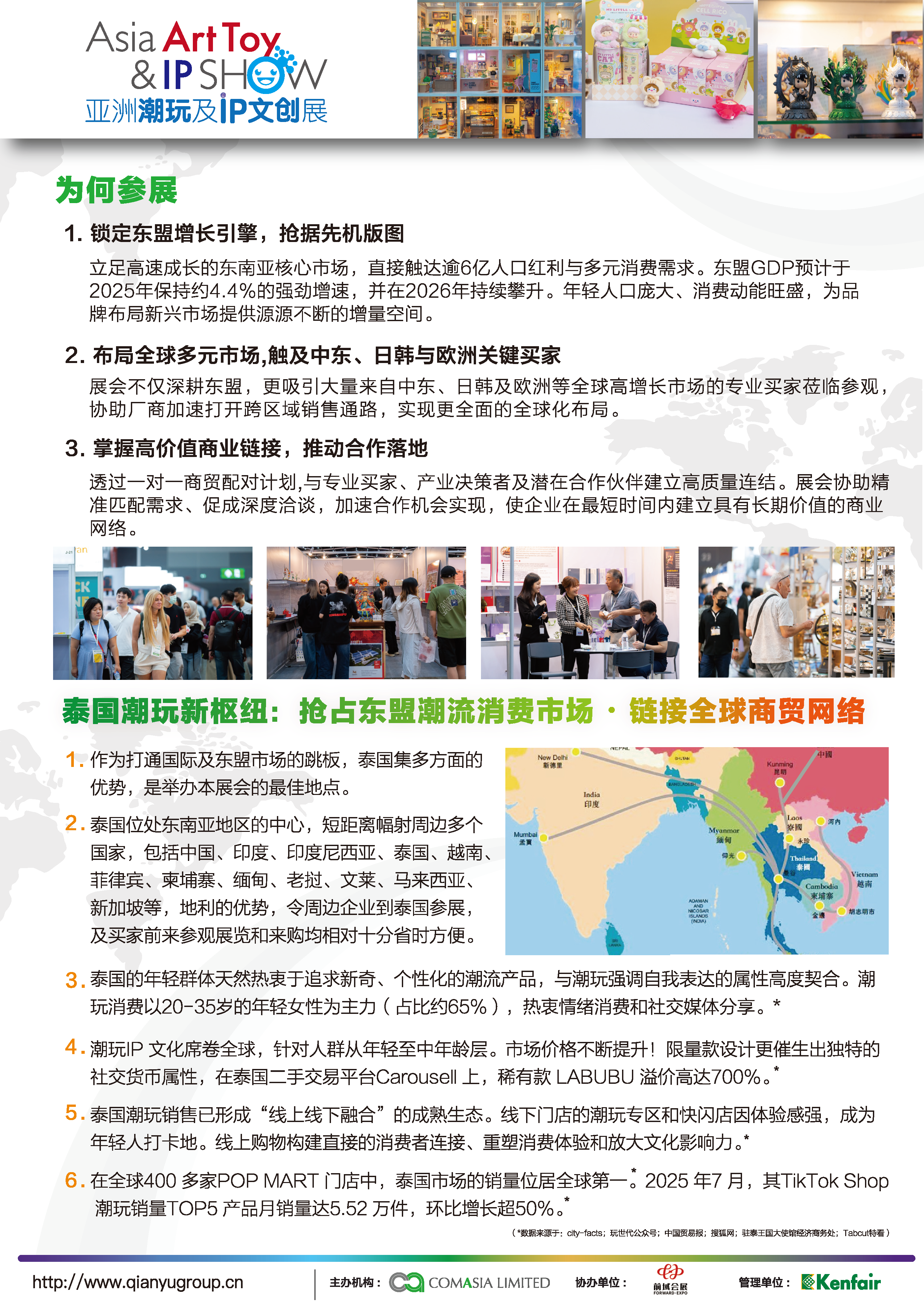本次展会将特别设立「亚洲潮玩及ip文创展」,聚焦泰国潮玩新势力,直达东盟年轻消费市场,共享展会庞大的高端买家网络与智能配对系统,为潮玩产业开拓亚洲乃至全球市场提供全新增长平台。