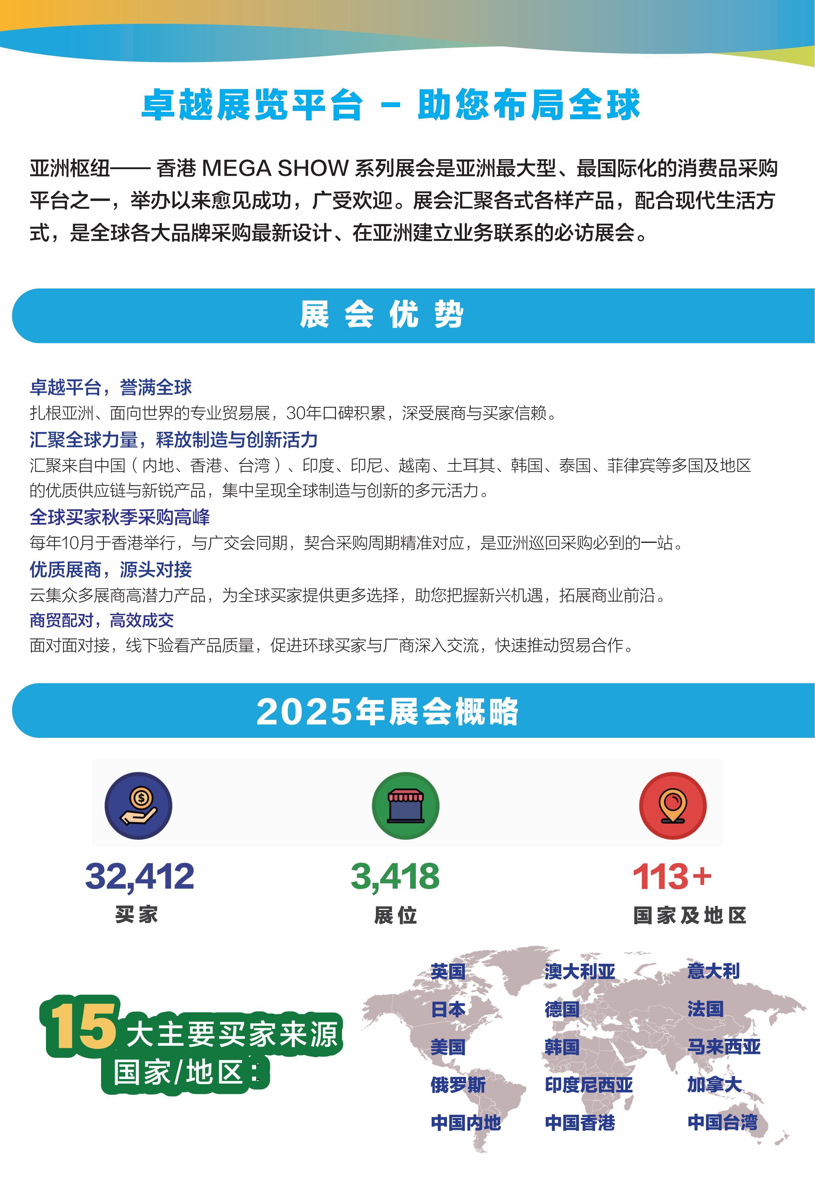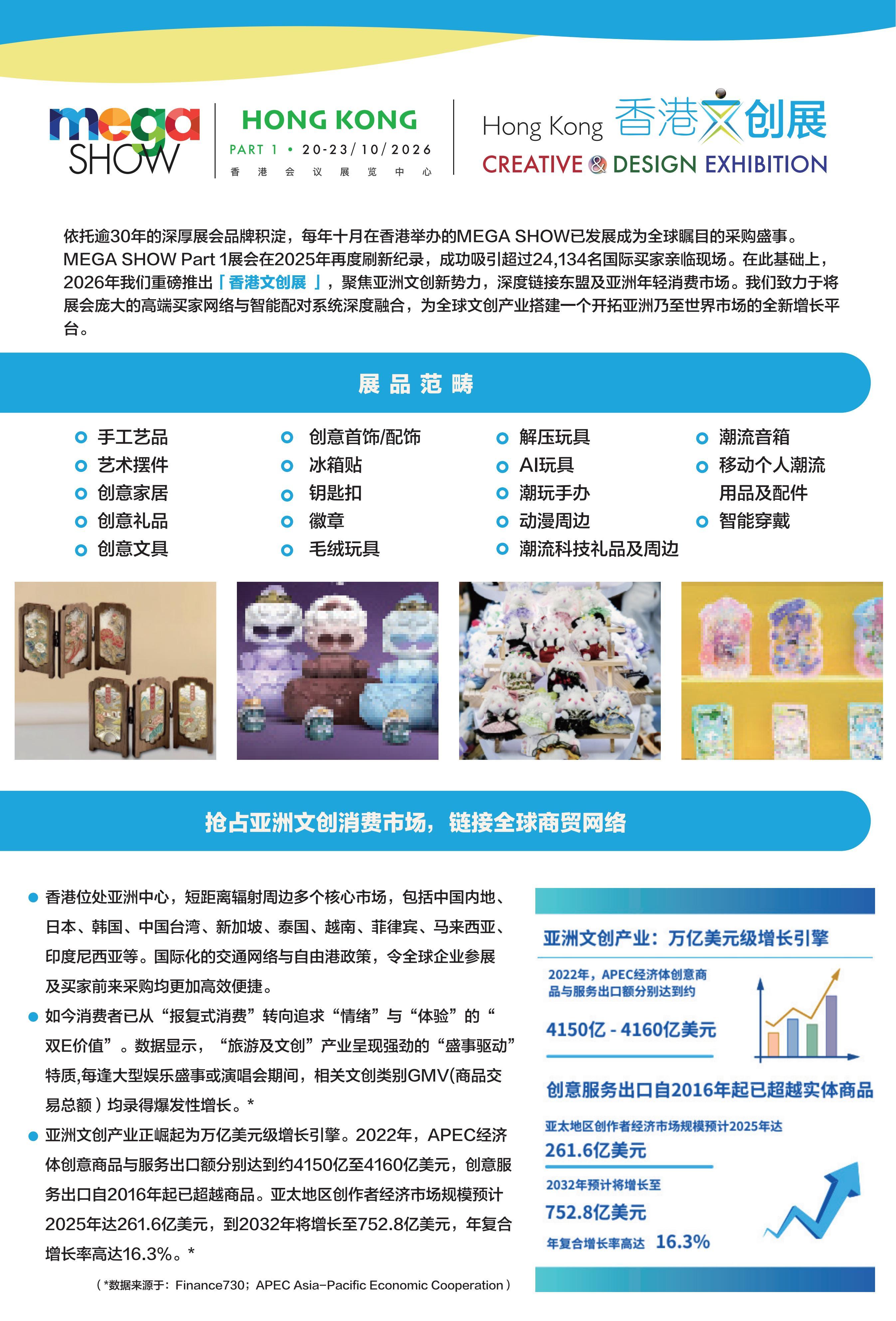 三十多年来,每年十月下旬于香港举行的 MEGA SHOW 系列展会一直是环球厂商展示最新产品和买家采购“亚洲制造”产品的重要枢纽。